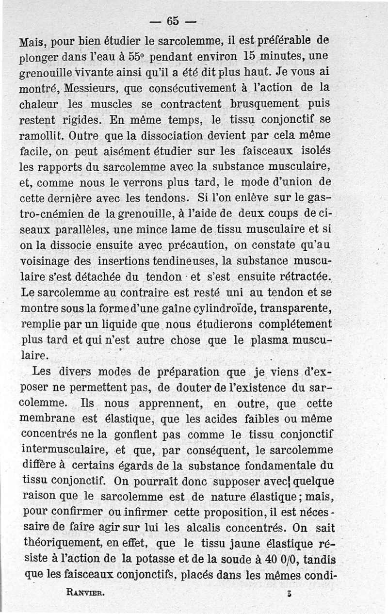 Leçons d'anatomie générale sur le système musculaire, par L. Ranvier,... recueillies par M. J. Renaut