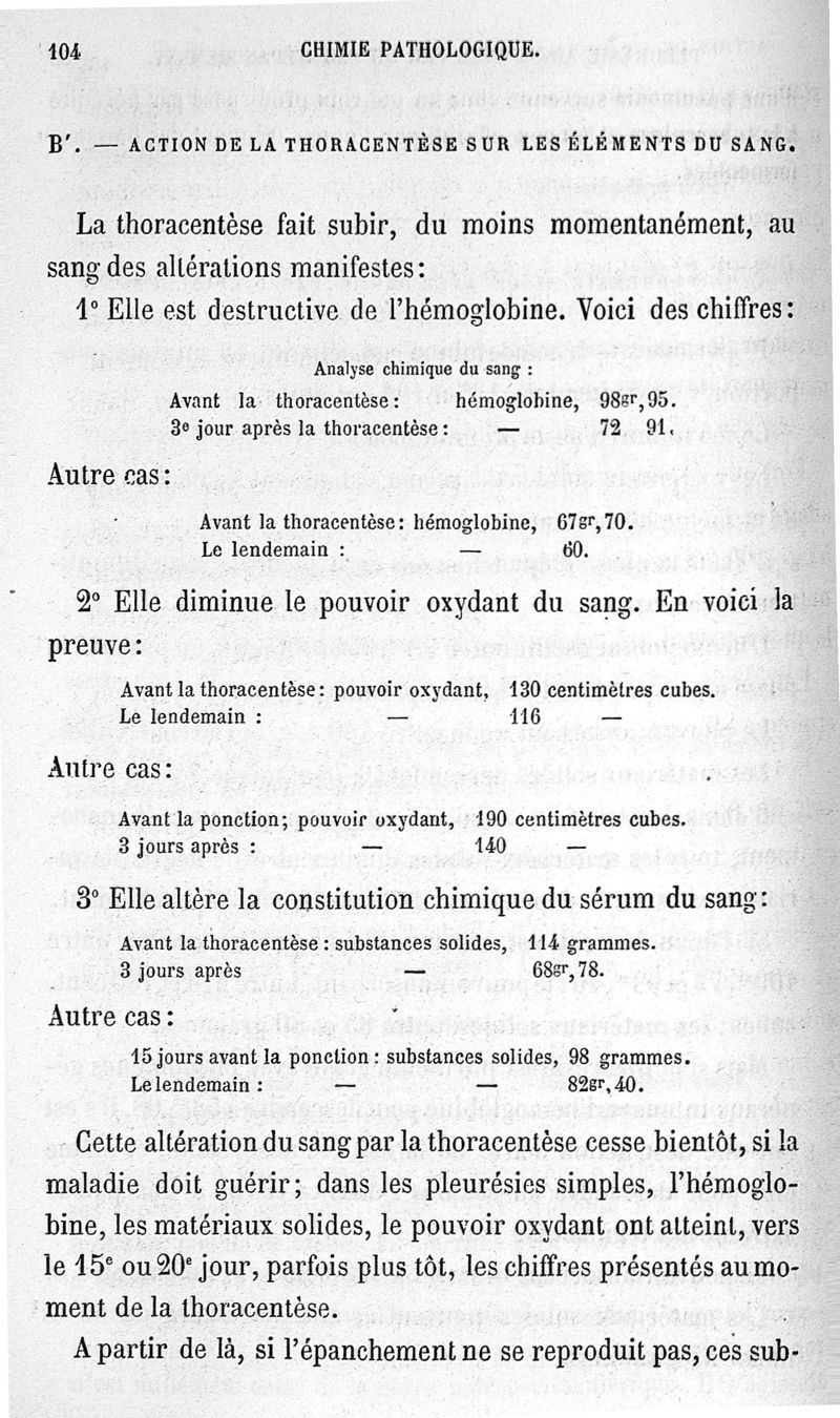 Chimie pathologique : recherches d'hématologie clinique. Les altérations du sang dans les maladies.