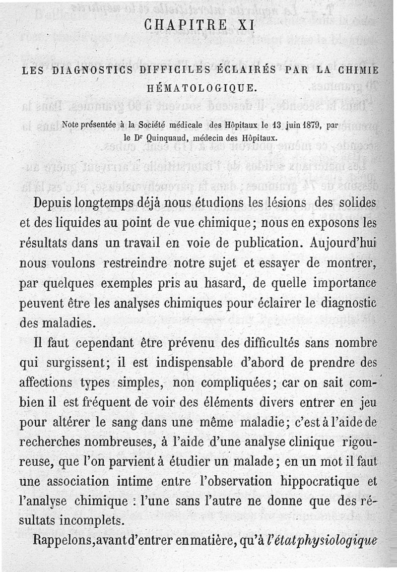 Chimie pathologique : recherches d'hématologie clinique. Les altérations du sang dans les maladies.