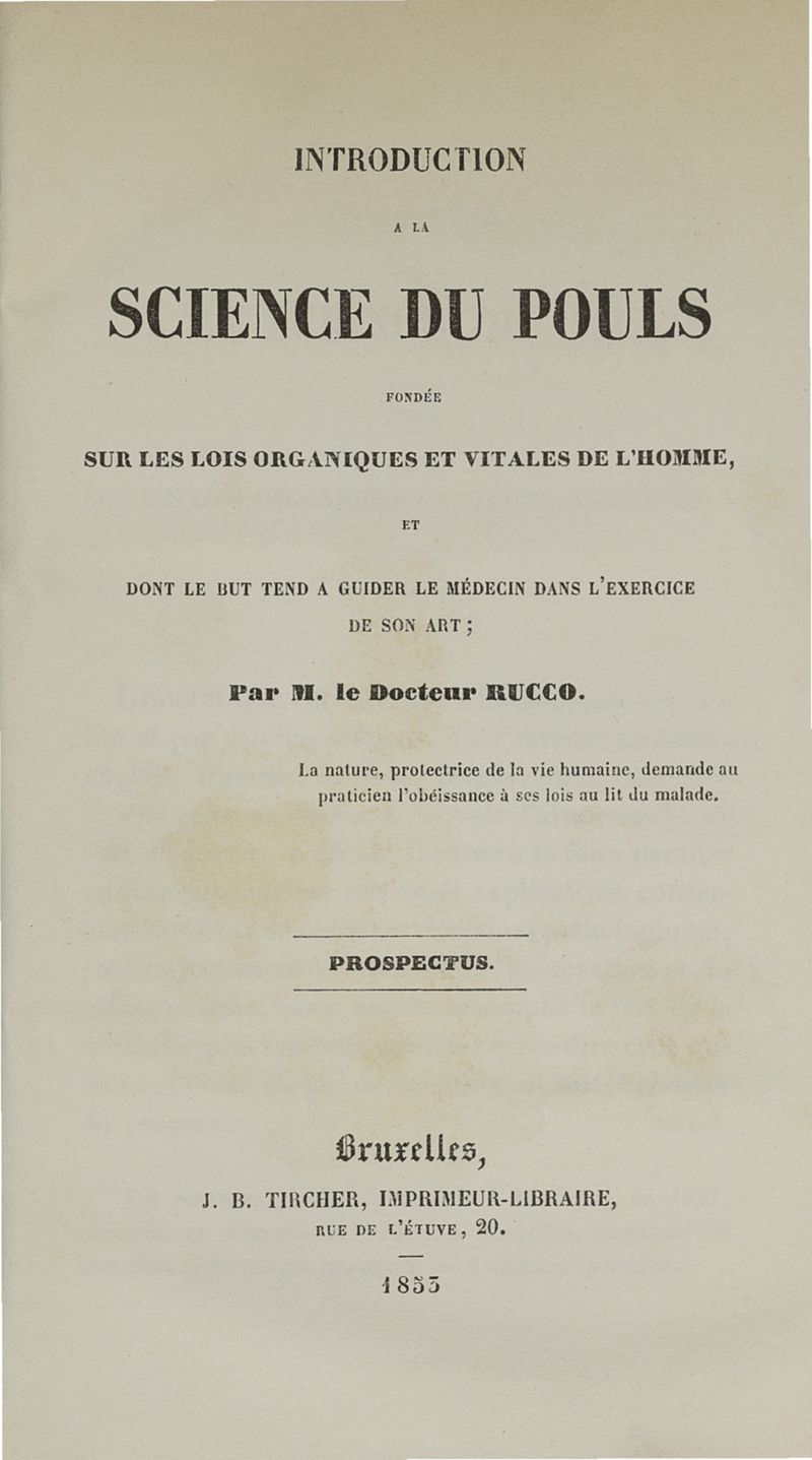 Introduction à la science du pouls fondée sur les lois organiques et vitales de l'homme, et dont le but tend à guider le médecin dans l'exercice de son art : prospectus