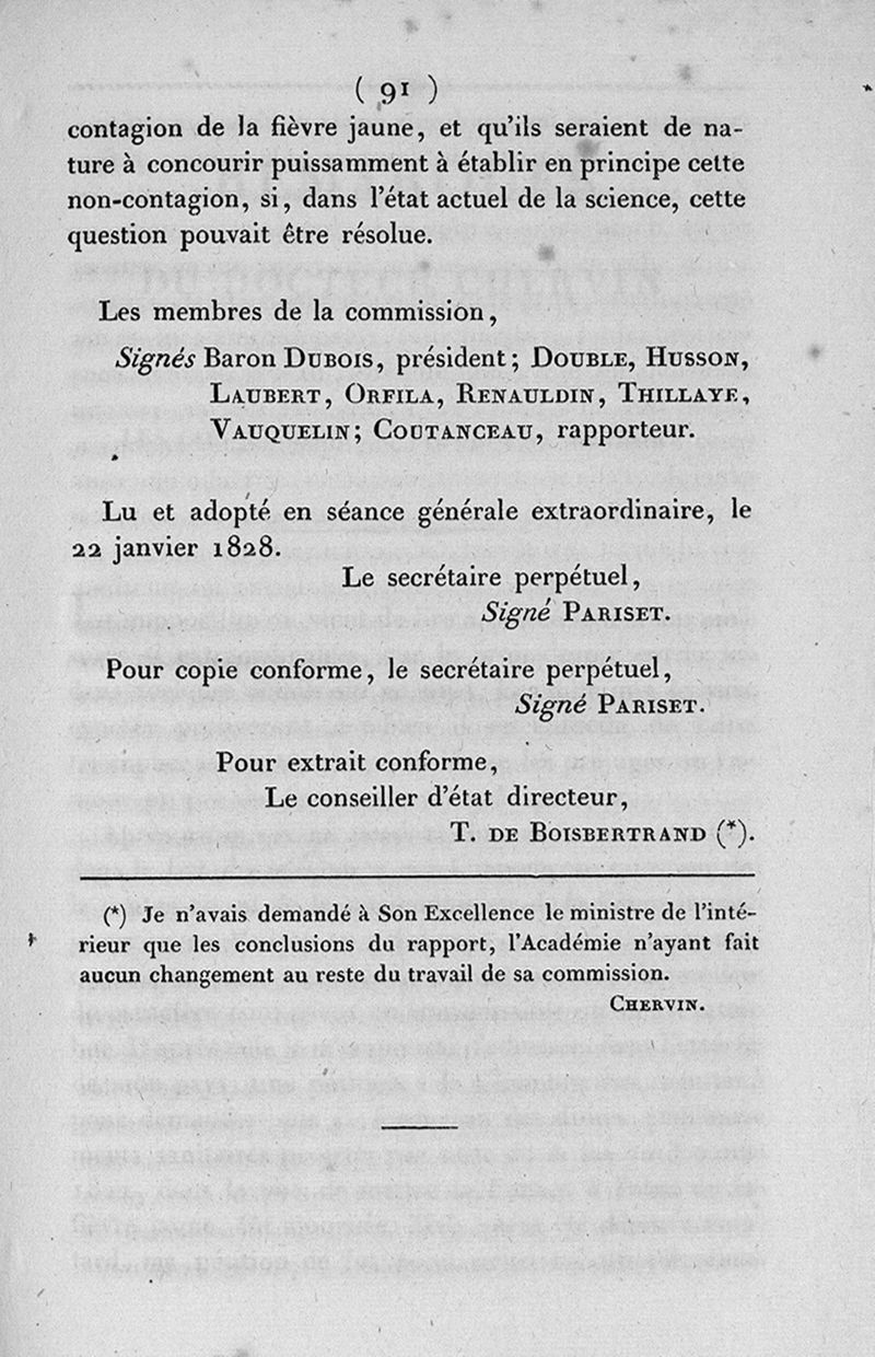 Rapport lu a l'Académie royale de médecine, dans les séances des 15 mai et 19 juin 1827 : au nom de la commission chargée d'examiner les documents de M. Chervin concernant la fièvre jaune