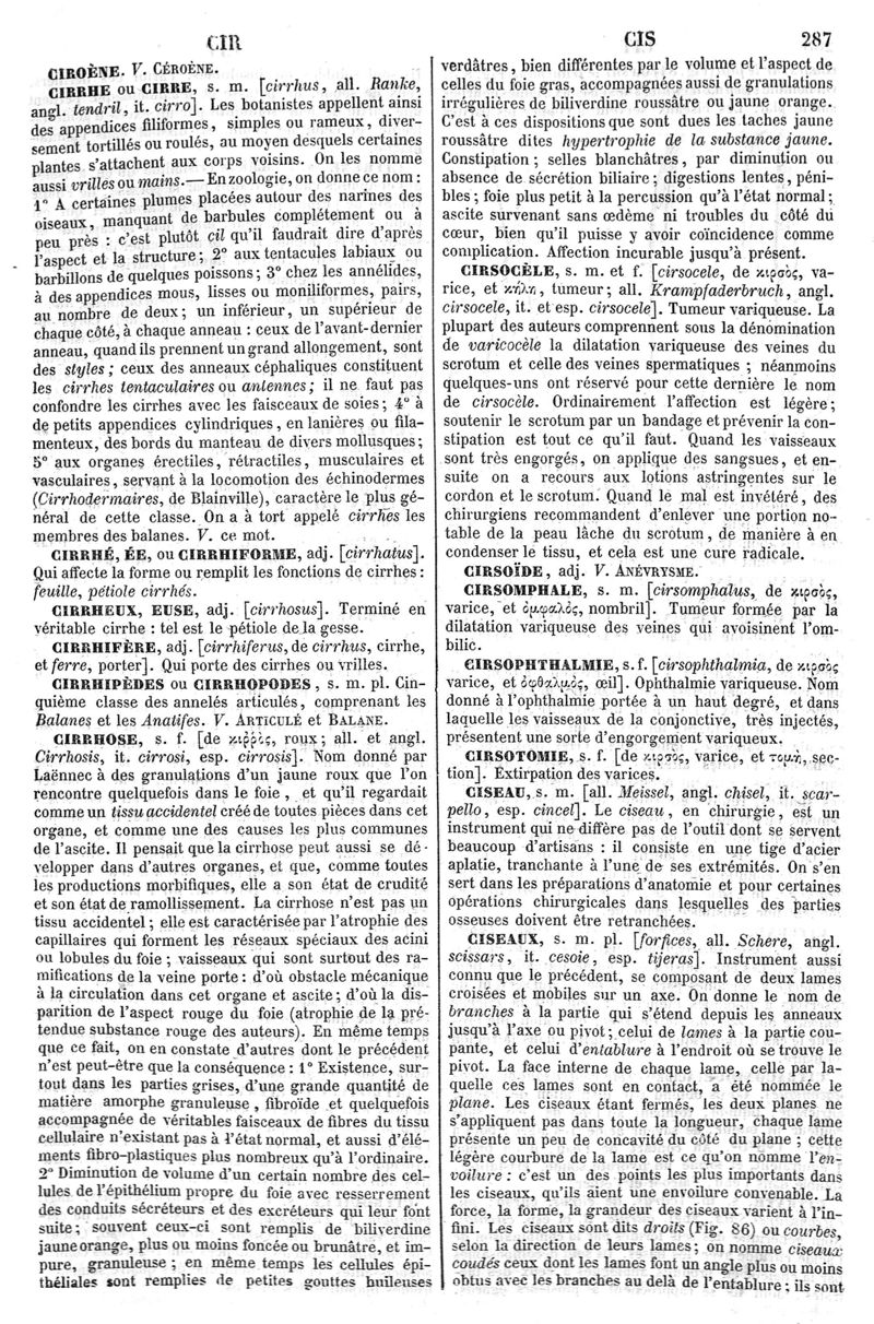 Dictionnaire de médecine, de chirurgie, de pharmacie, des sciences accessoires et de l'art vétérinaire de P.-H. Nysten, 10e édition, entièrement refondue par É. Littré,... Ch. Robin,... Ouvrage augmenté de la Synonymie latine, grecque, allemande, anglaise, italienne et espagnole et suivi d'un glossaire de ces diverses langues