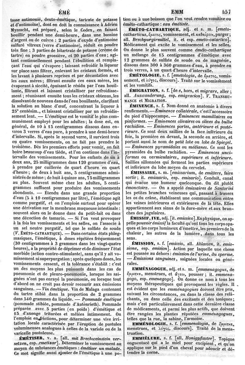 Dictionnaire de médecine, de chirurgie, de pharmacie, des sciences accessoires et de l'art vétérinaire de P.-H. Nysten, 10e édition, entièrement refondue par É. Littré,... Ch. Robin,... Ouvrage augmenté de la Synonymie latine, grecque, allemande, anglaise, italienne et espagnole et suivi d'un glossaire de ces diverses langues
