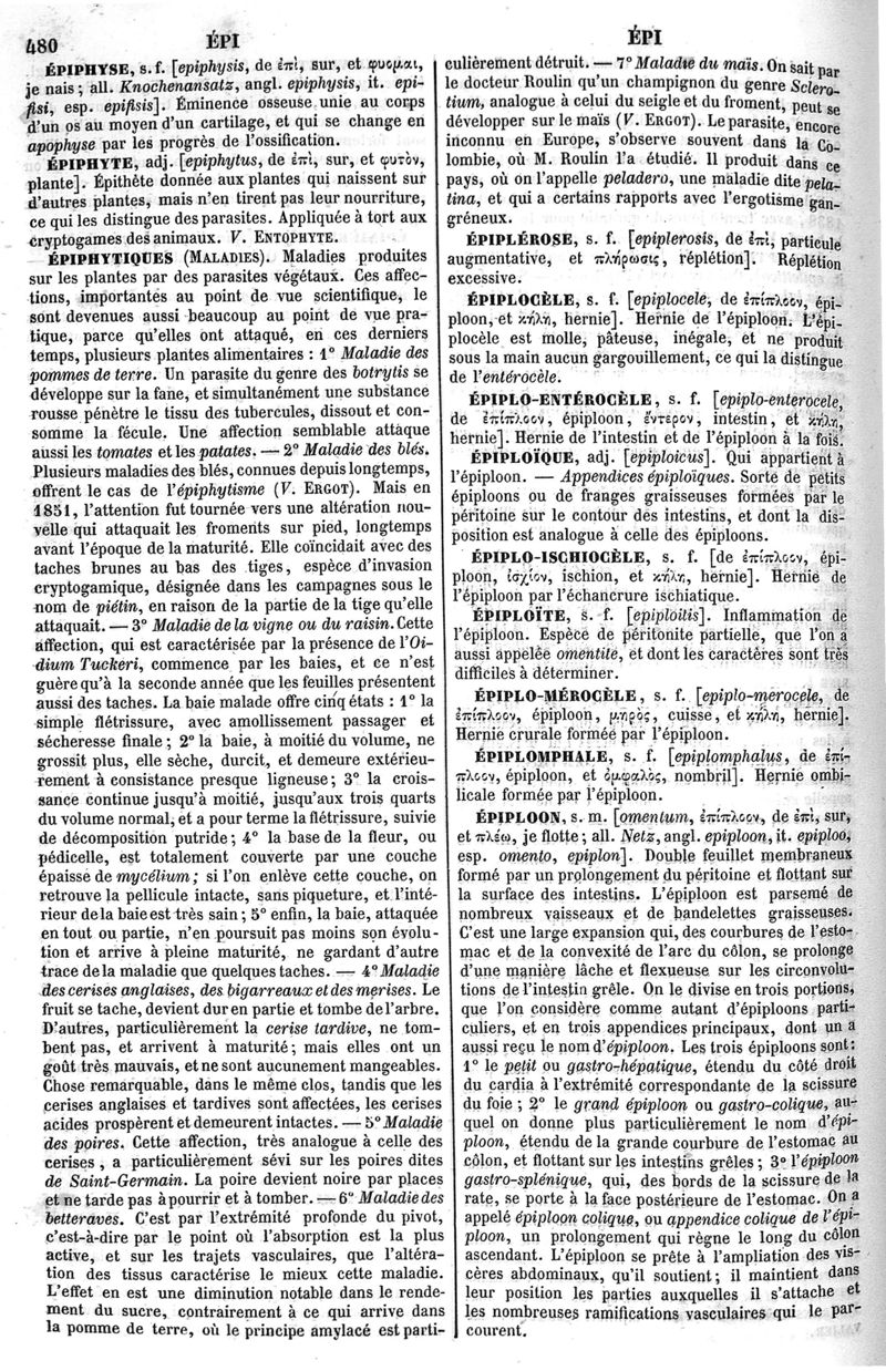 Dictionnaire de médecine, de chirurgie, de pharmacie, des sciences accessoires et de l'art vétérinaire de P.-H. Nysten, 10e édition, entièrement refondue par É. Littré,... Ch. Robin,... Ouvrage augmenté de la Synonymie latine, grecque, allemande, anglaise, italienne et espagnole et suivi d'un glossaire de ces diverses langues