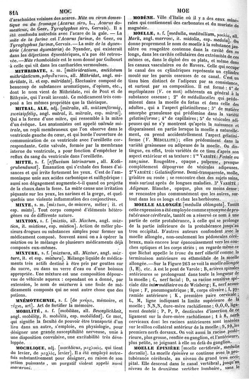 Dictionnaire de médecine, de chirurgie, de pharmacie, des sciences accessoires et de l'art vétérinaire de P.-H. Nysten, 10e édition, entièrement refondue par É. Littré,... Ch. Robin,... Ouvrage augmenté de la Synonymie latine, grecque, allemande, anglaise, italienne et espagnole et suivi d'un glossaire de ces diverses langues