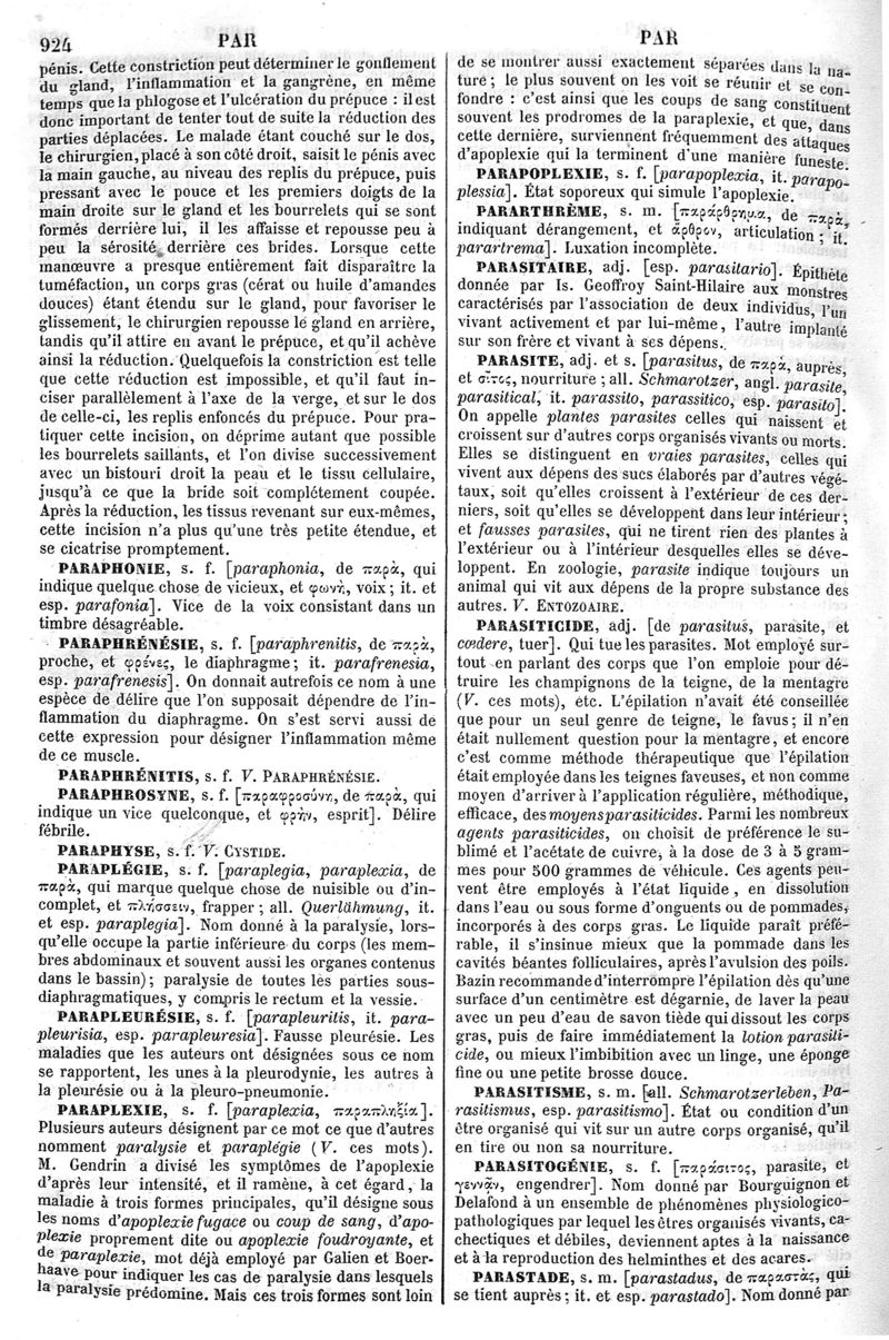Dictionnaire de médecine, de chirurgie, de pharmacie, des sciences accessoires et de l'art vétérinaire de P.-H. Nysten, 10e édition, entièrement refondue par É. Littré,... Ch. Robin,... Ouvrage augmenté de la Synonymie latine, grecque, allemande, anglaise, italienne et espagnole et suivi d'un glossaire de ces diverses langues