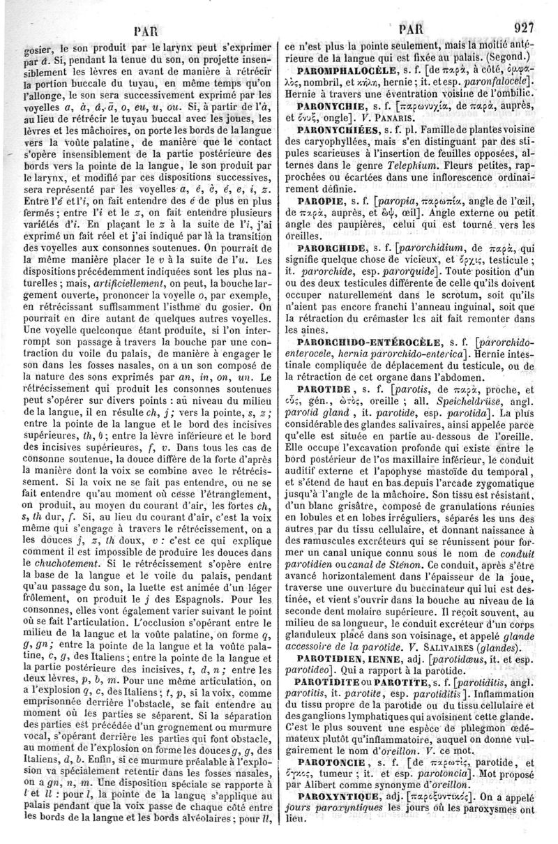 Dictionnaire de médecine, de chirurgie, de pharmacie, des sciences accessoires et de l'art vétérinaire de P.-H. Nysten, 10e édition, entièrement refondue par É. Littré,... Ch. Robin,... Ouvrage augmenté de la Synonymie latine, grecque, allemande, anglaise, italienne et espagnole et suivi d'un glossaire de ces diverses langues