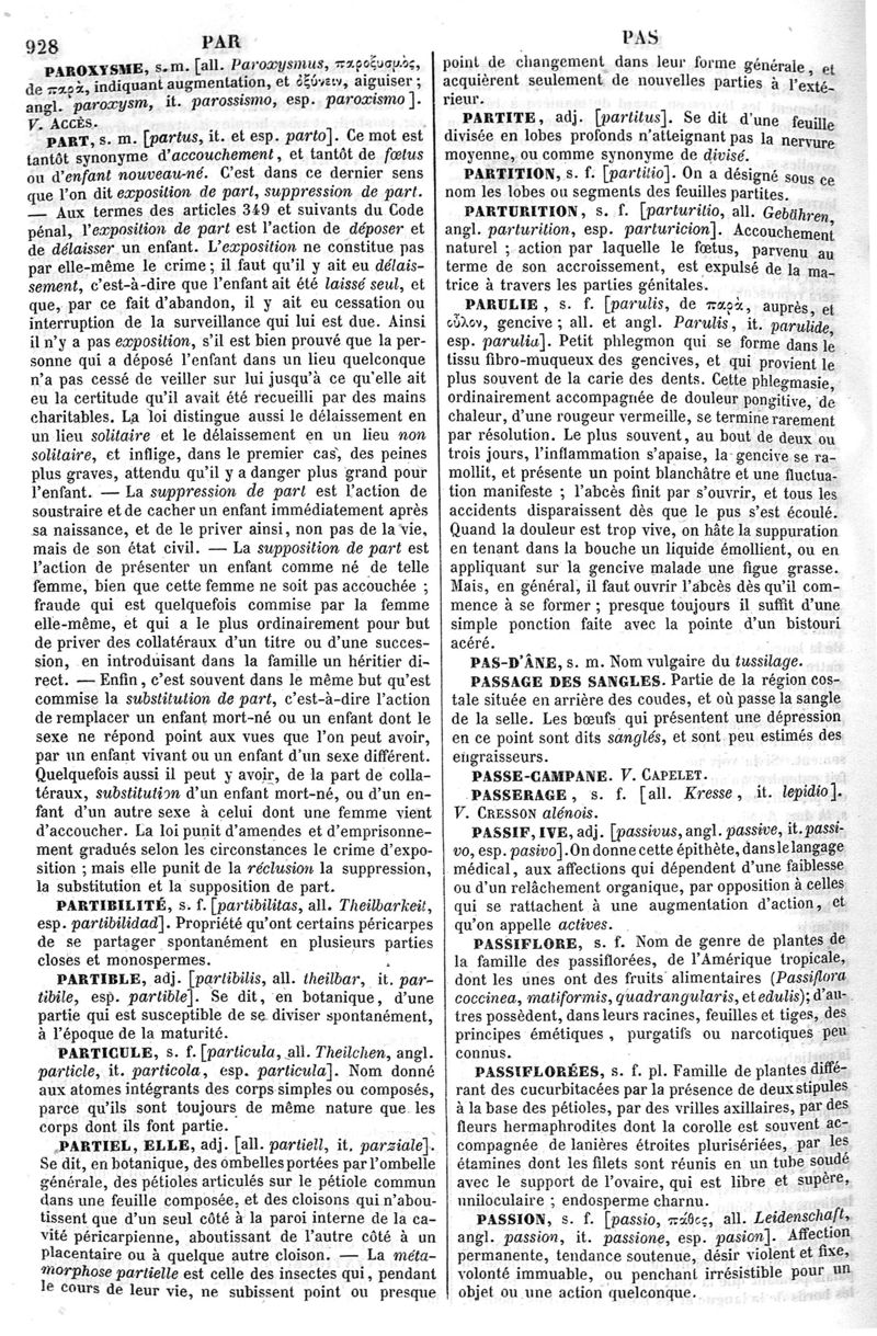 Dictionnaire de médecine, de chirurgie, de pharmacie, des sciences accessoires et de l'art vétérinaire de P.-H. Nysten, 10e édition, entièrement refondue par É. Littré,... Ch. Robin,... Ouvrage augmenté de la Synonymie latine, grecque, allemande, anglaise, italienne et espagnole et suivi d'un glossaire de ces diverses langues