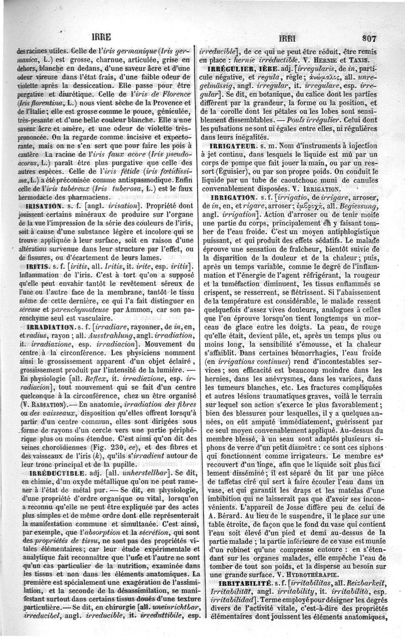 Dictionnaire de médecine, de chirurgie, de pharmacie, des sciences accessoires et de l'art vétérinaire de P.-H. Nysten, 12e édition, entièrement refondue par É. Littré,... Ch. Robin,... Ouvrage augmenté de la Synonymie latine, grecque, allemande, anglaise, italienne et espagnole et suivi d'un glossaire de ces diverses langues