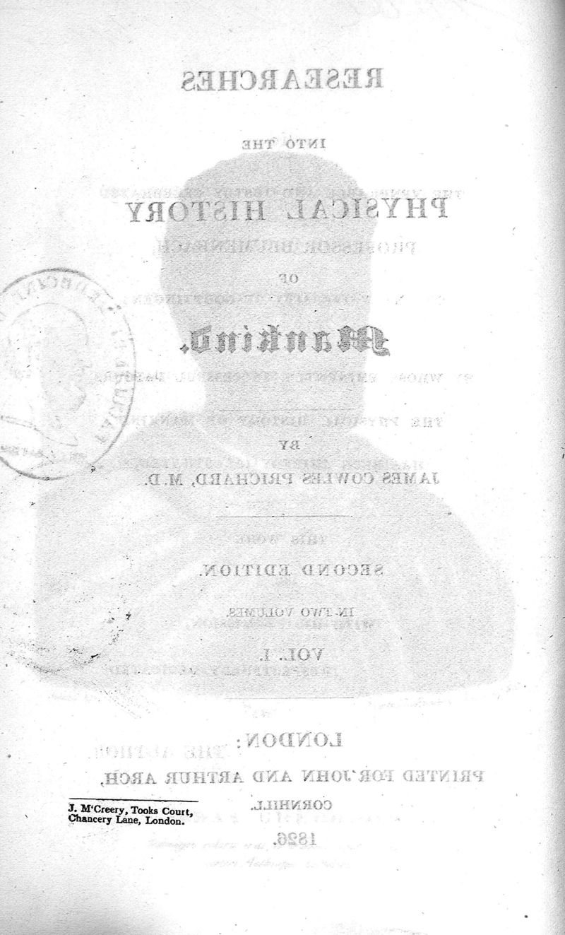 Researches into the physical history of mankind. Second edition in two volumes. Vol. 1