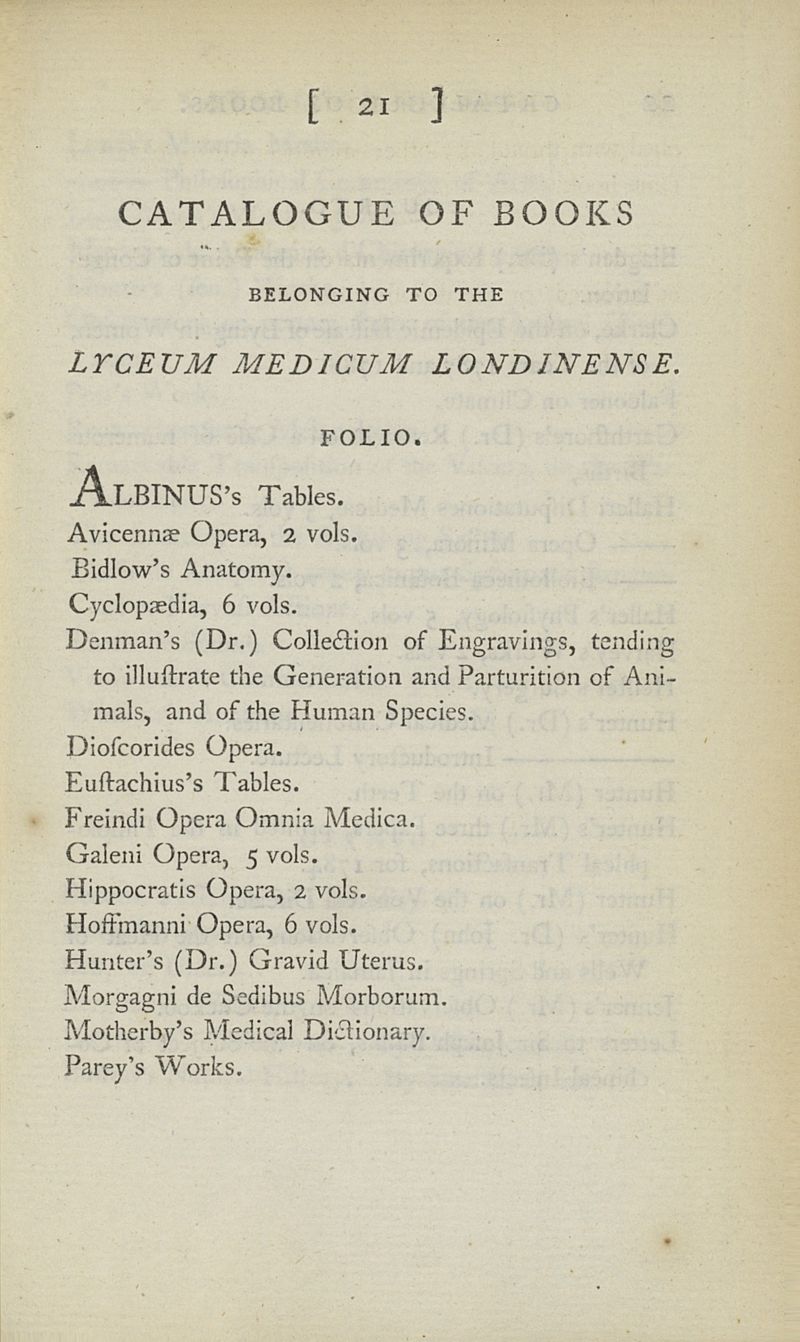 Regulations and laws of the Lyceum Medicum Londinense, held at Mr. John Hunter's lecture room, Castle Street, Leicester Square