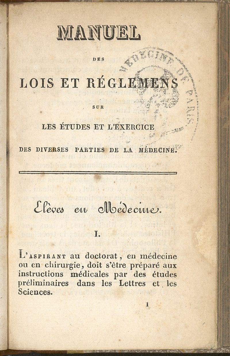 Manuel des lois et réglemens sur les études et l'exercice des diverses parties de la médecine