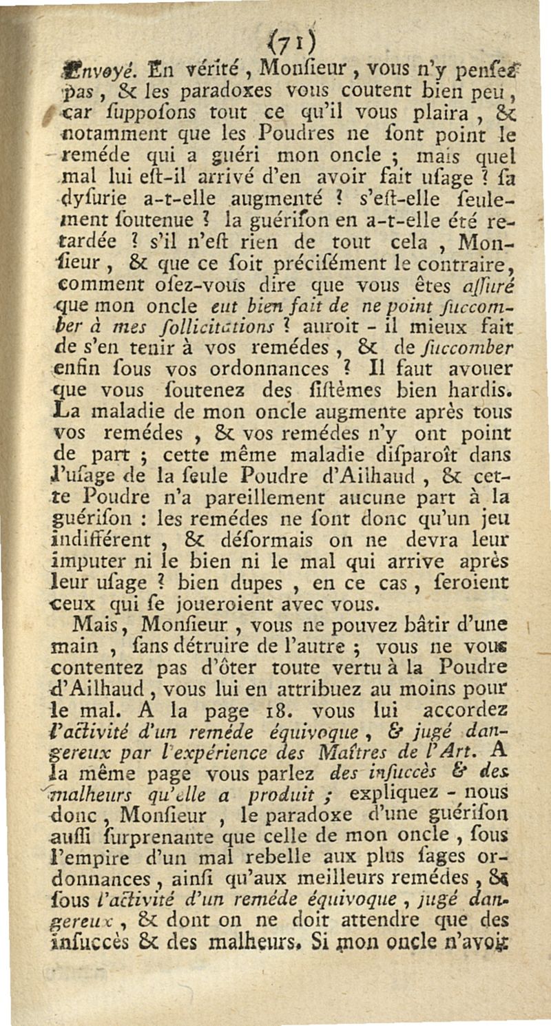 Démêlé littéraire sur la poudre d'Ailhaud ou recueil de plusieurs écrits intéressants pour et contre ce remède