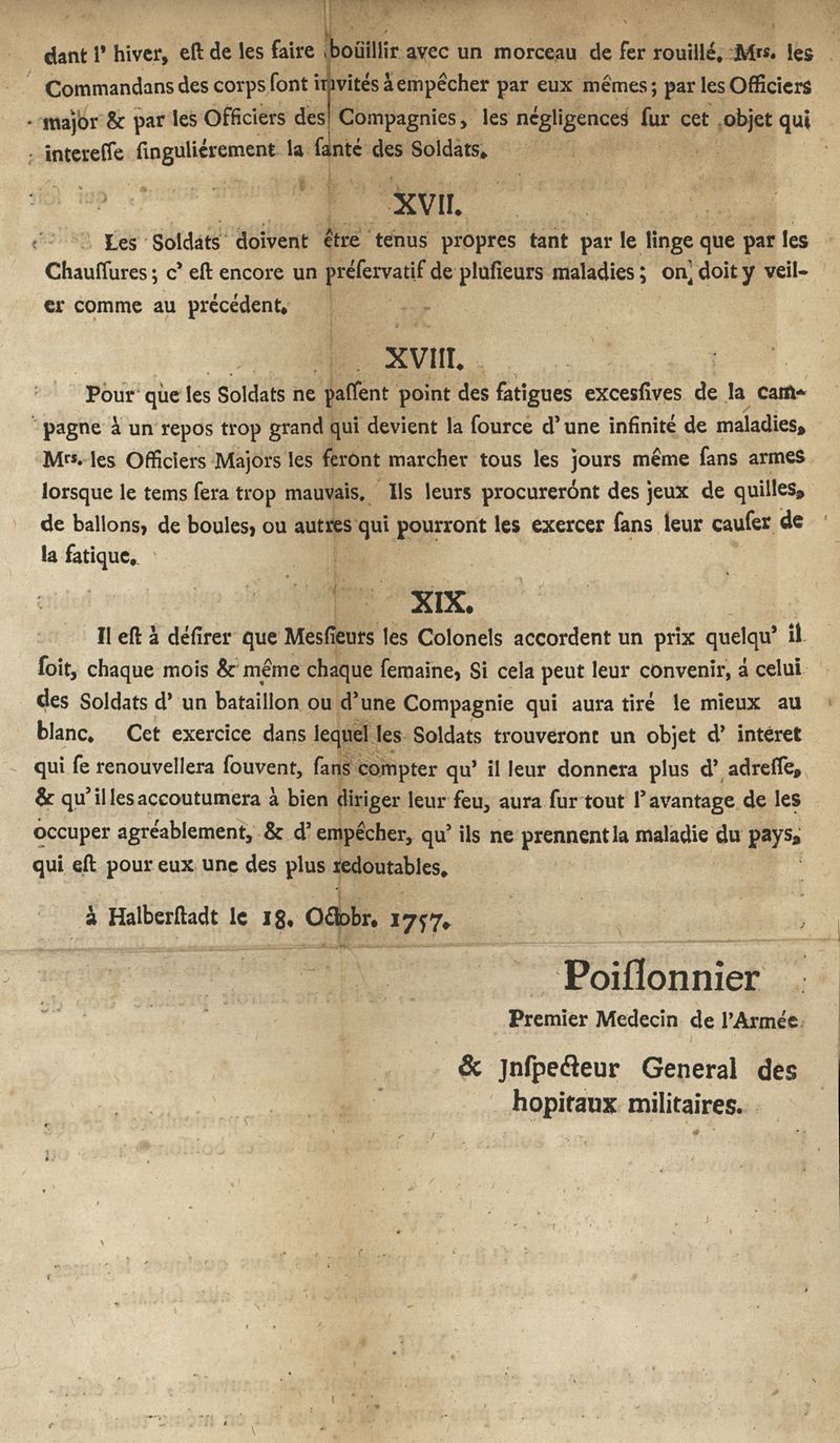 Mémoire pour servir d’instruction sur les moyens de conserver la santé des troupes pendant les quartiers d’hiver