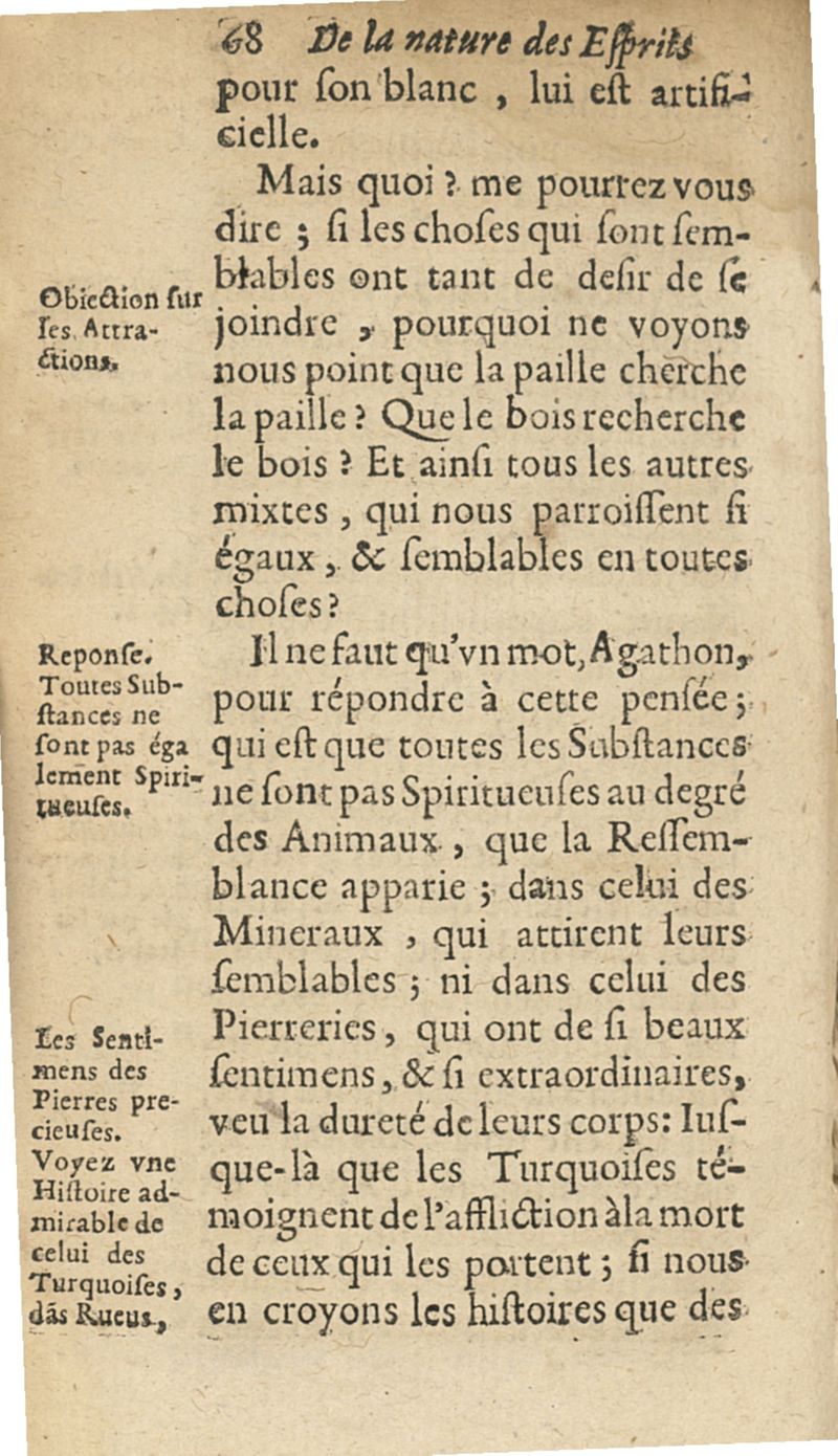 Raisonnements sur la nature des esprits qui servent aux sentiments