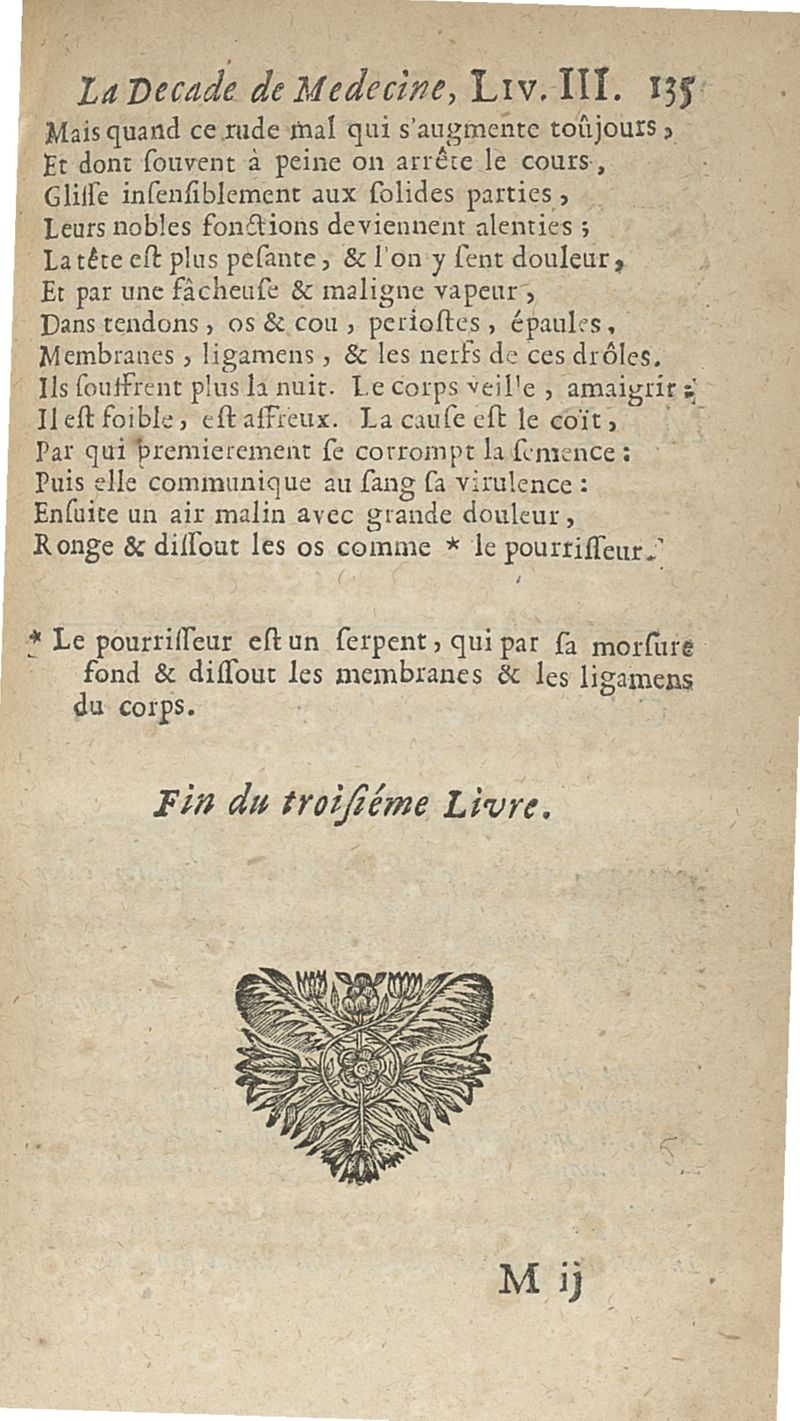 Francisci Porti,... Medica decas... La Décade de médecine, ou le Médecin des riches et des pauvres, expliquant les signes, les causes et les remèdes des maladies, composé en vers latins par François Du Port, nouvellement mis en vers françois par M. Du Four
