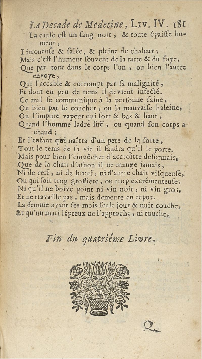 Francisci Porti,... Medica decas... La Décade de médecine, ou le Médecin des riches et des pauvres, expliquant les signes, les causes et les remèdes des maladies, composé en vers latins par François Du Port, nouvellement mis en vers françois par M. Du Four