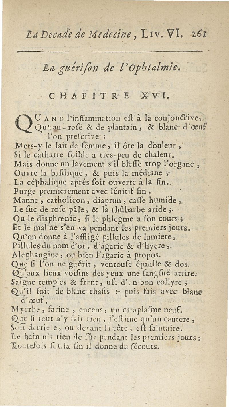 Francisci Porti,... Medica decas... La Décade de médecine, ou le Médecin des riches et des pauvres, expliquant les signes, les causes et les remèdes des maladies, composé en vers latins par François Du Port, nouvellement mis en vers françois par M. Du Four