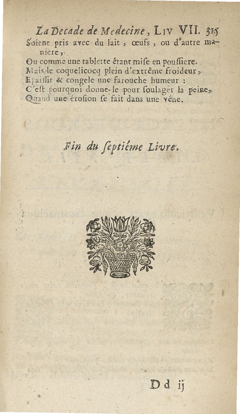 Francisci Porti,... Medica decas... La Décade de médecine, ou le Médecin des riches et des pauvres, expliquant les signes, les causes et les remèdes des maladies, composé en vers latins par François Du Port, nouvellement mis en vers françois par M. Du Four