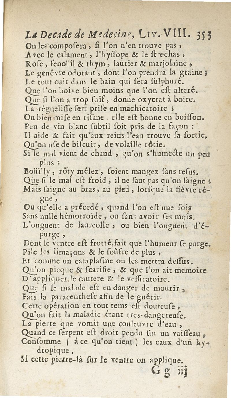 Francisci Porti,... Medica decas... La Décade de médecine, ou le Médecin des riches et des pauvres, expliquant les signes, les causes et les remèdes des maladies, composé en vers latins par François Du Port, nouvellement mis en vers françois par M. Du Four