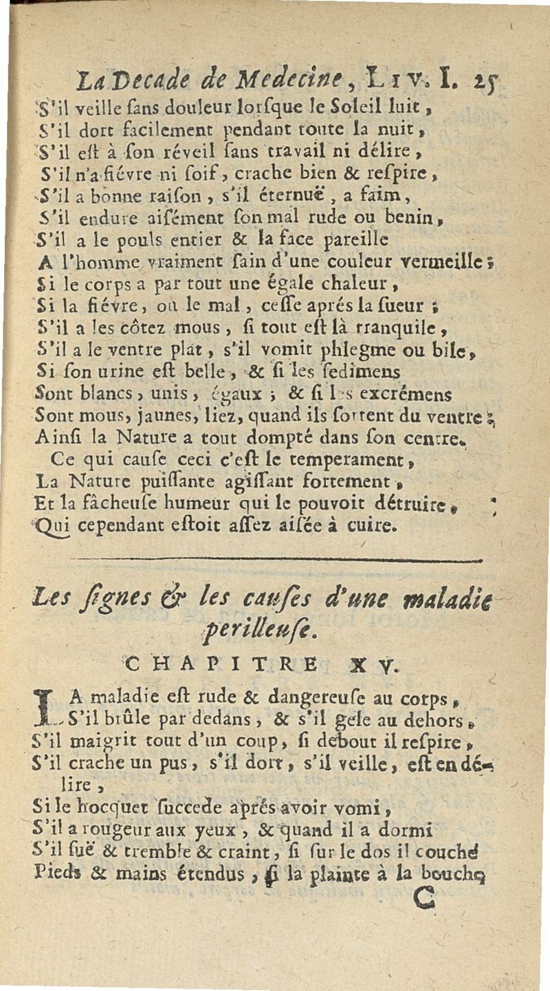 Francisci Porti,... Medica decas... La Décade de médecine, ou le Médecin des riches et des pauvres, expliquant les signes, les causes et les remèdes des maladies, composé en vers latins par François Du Port, nouvellement mis en vers françois par M. Du Four