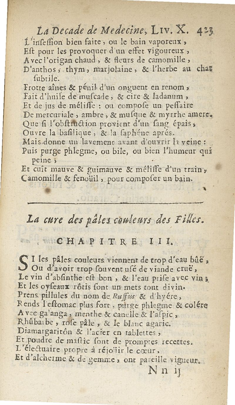 Francisci Porti,... Medica decas... La Décade de médecine, ou le Médecin des riches et des pauvres, expliquant les signes, les causes et les remèdes des maladies, composé en vers latins par François Du Port, nouvellement mis en vers françois par M. Du Four