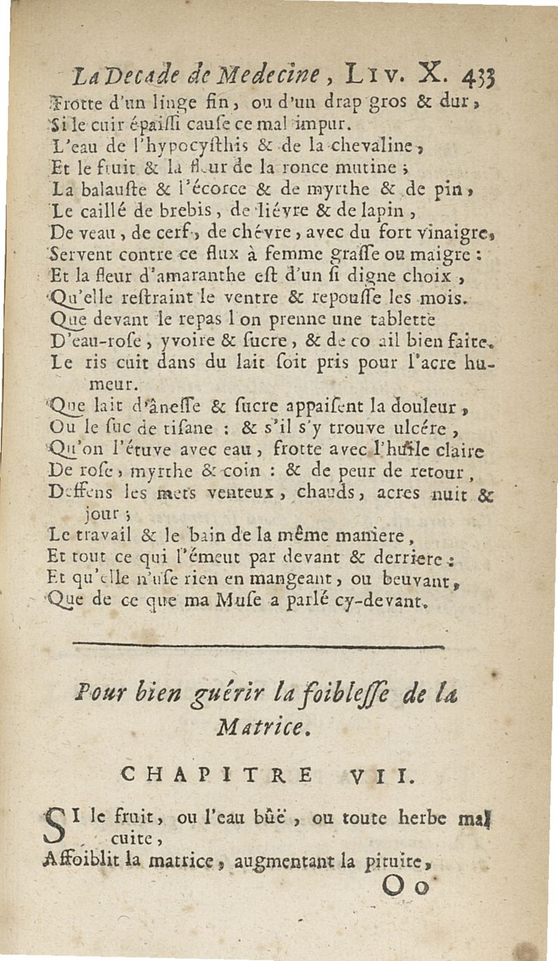 Francisci Porti,... Medica decas... La Décade de médecine, ou le Médecin des riches et des pauvres, expliquant les signes, les causes et les remèdes des maladies, composé en vers latins par François Du Port, nouvellement mis en vers françois par M. Du Four