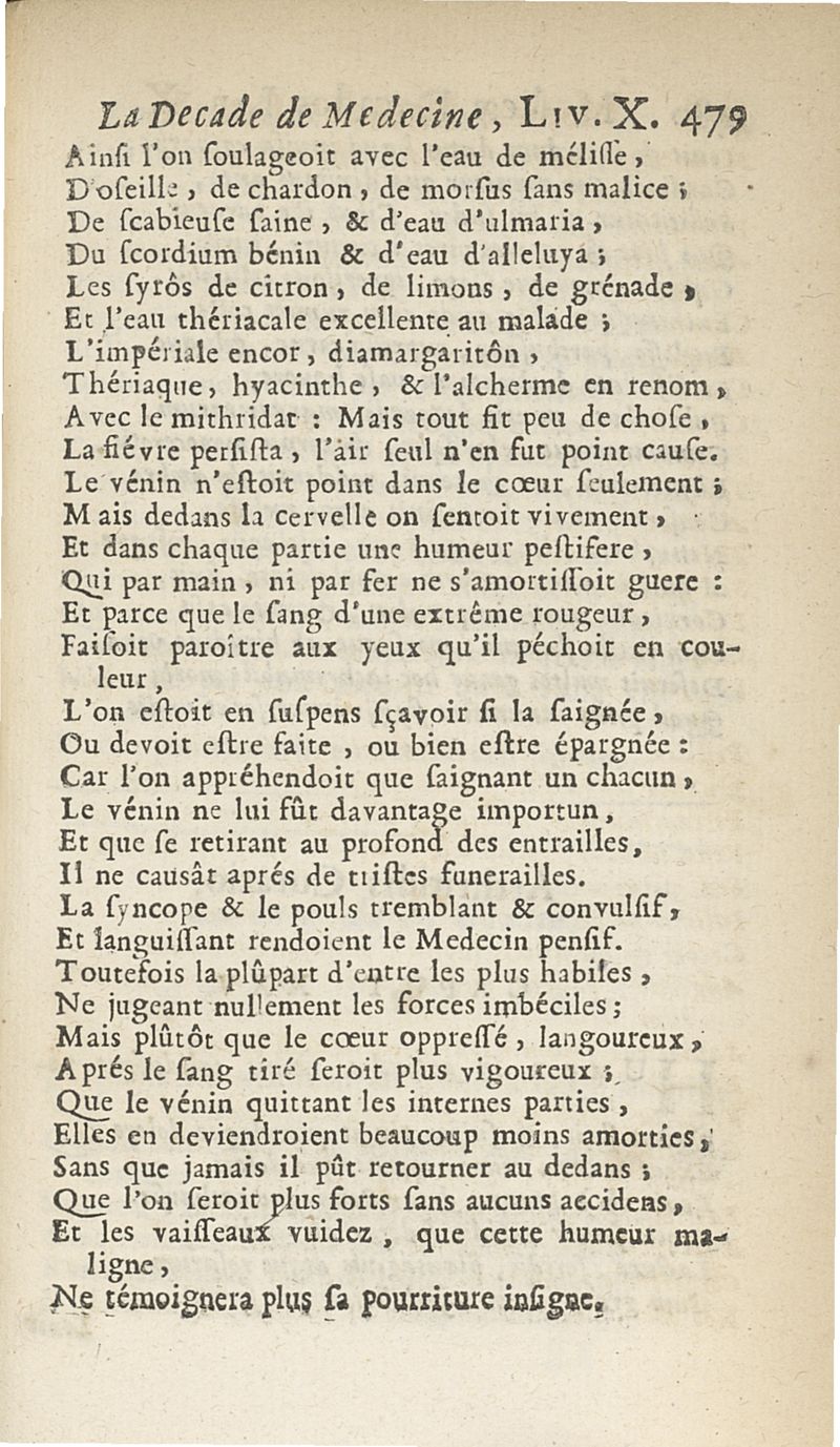 Francisci Porti,... Medica decas... La Décade de médecine, ou le Médecin des riches et des pauvres, expliquant les signes, les causes et les remèdes des maladies, composé en vers latins par François Du Port, nouvellement mis en vers françois par M. Du Four