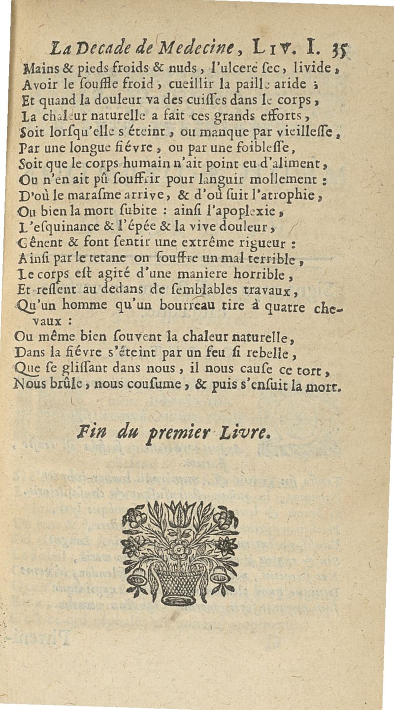 Francisci Porti,... Medica decas... La Décade de médecine, ou le Médecin des riches et des pauvres, expliquant les signes, les causes et les remèdes des maladies, composé en vers latins par François Du Port, nouvellement mis en vers françois par M. Du Four