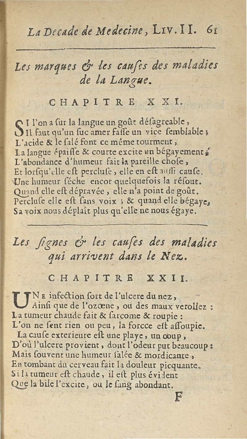 Francisci Porti,... Medica decas... La Décade de médecine, ou le Médecin des riches et des pauvres, expliquant les signes, les causes et les remèdes des maladies, composé en vers latins par François Du Port, nouvellement mis en vers françois par M. Du Four