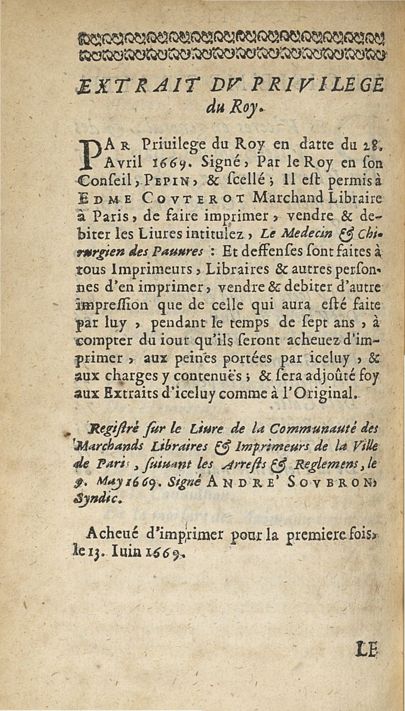 A Paris, chez Edme Couterot, 1669.