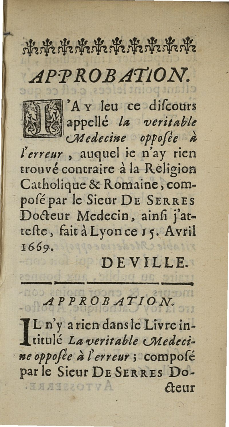 [Lyon], chez l'auteur, 1669.