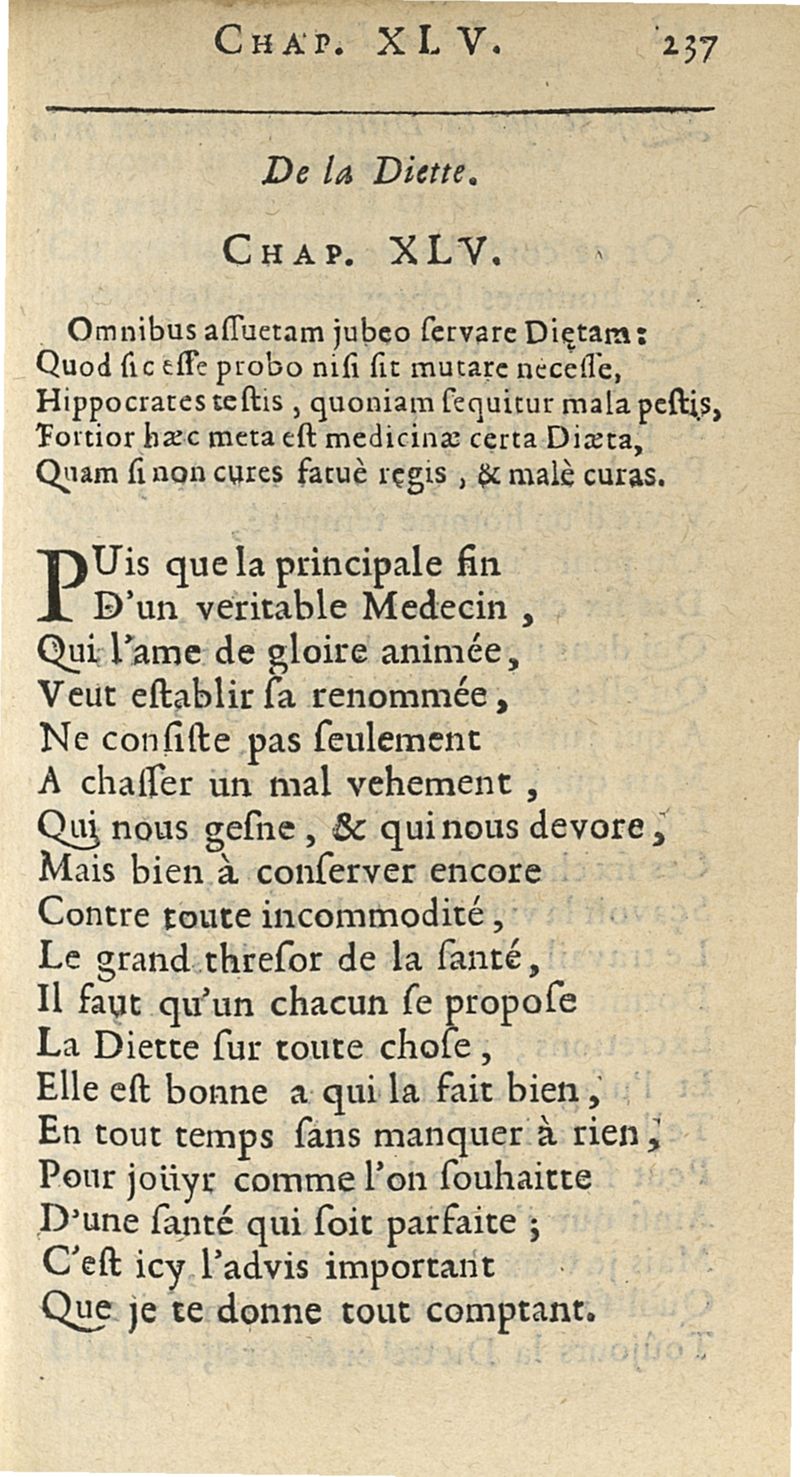 Commentaire en vers françois, sur l'Ecole de Salerne, contenant les moyens de se passer de medecin, de vivre long-temps en santé...par Monsieur D.F.C....