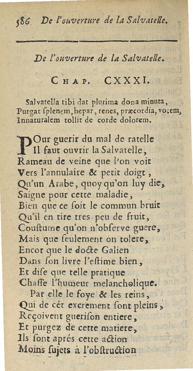 Commentaire en vers françois, sur l'Ecole de Salerne, contenant les moyens de se passer de medecin, de vivre long-temps en santé...par Monsieur D.F.C....