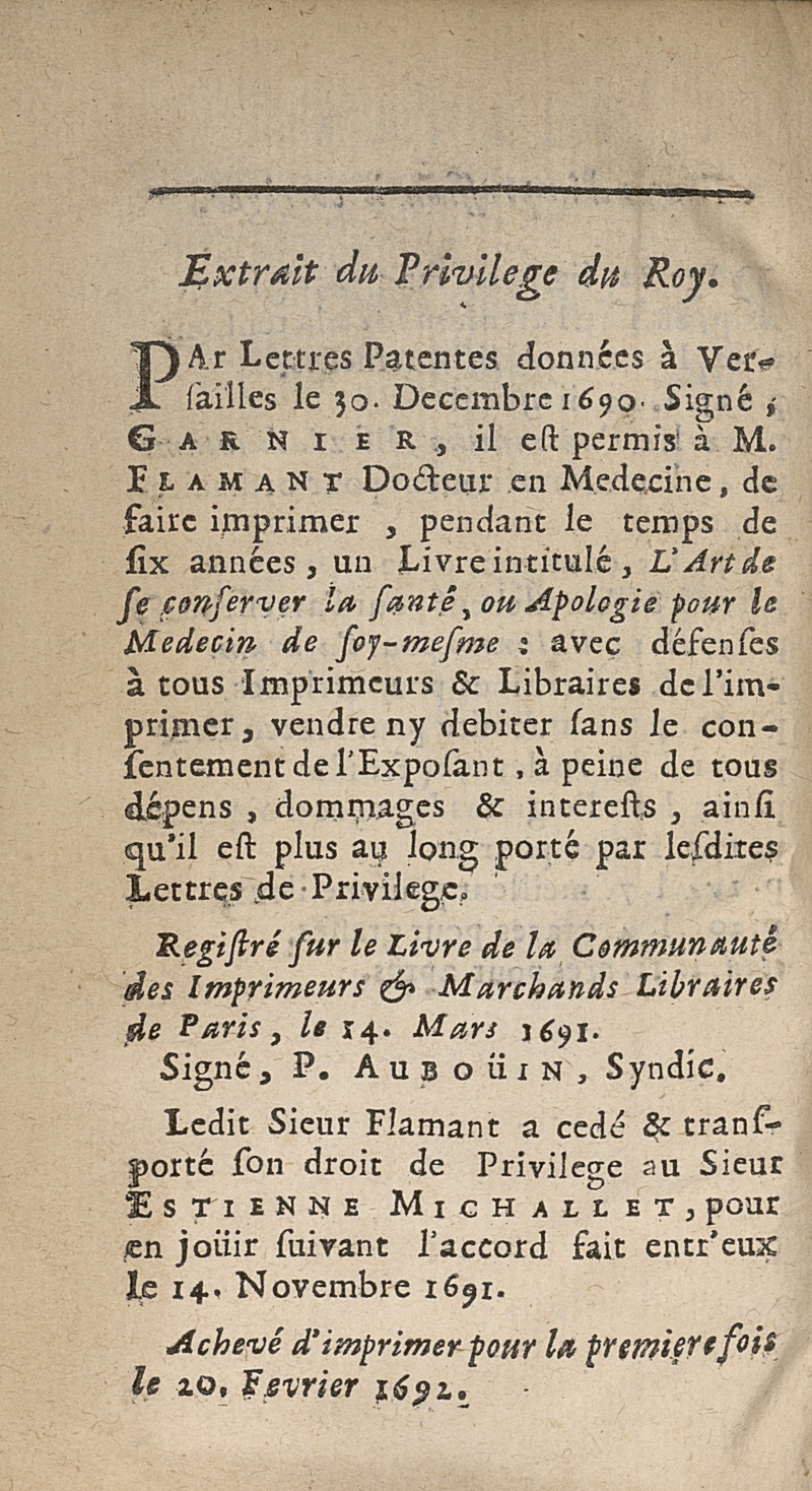 A Paris, chez Estienne Michallet, 1692.