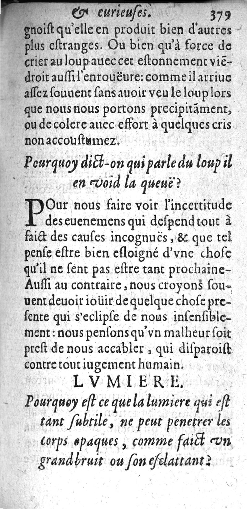 Questions naturelles et curieuses et curieuses : contenans diverses opinions problematiques, recueillies de la Medecine, touchant le regime de santé. ou se voient plusieurs proverbes populaires...curieusement recherchee & resoluës par P. Bailly...