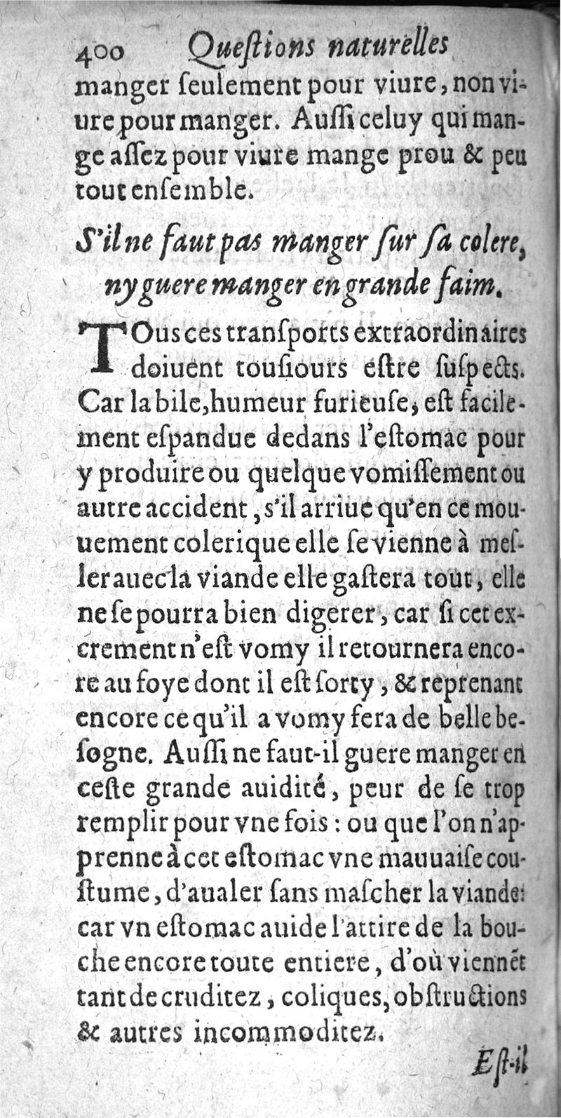 Questions naturelles et curieuses et curieuses : contenans diverses opinions problematiques, recueillies de la Medecine, touchant le regime de santé. ou se voient plusieurs proverbes populaires...curieusement recherchee & resoluës par P. Bailly...