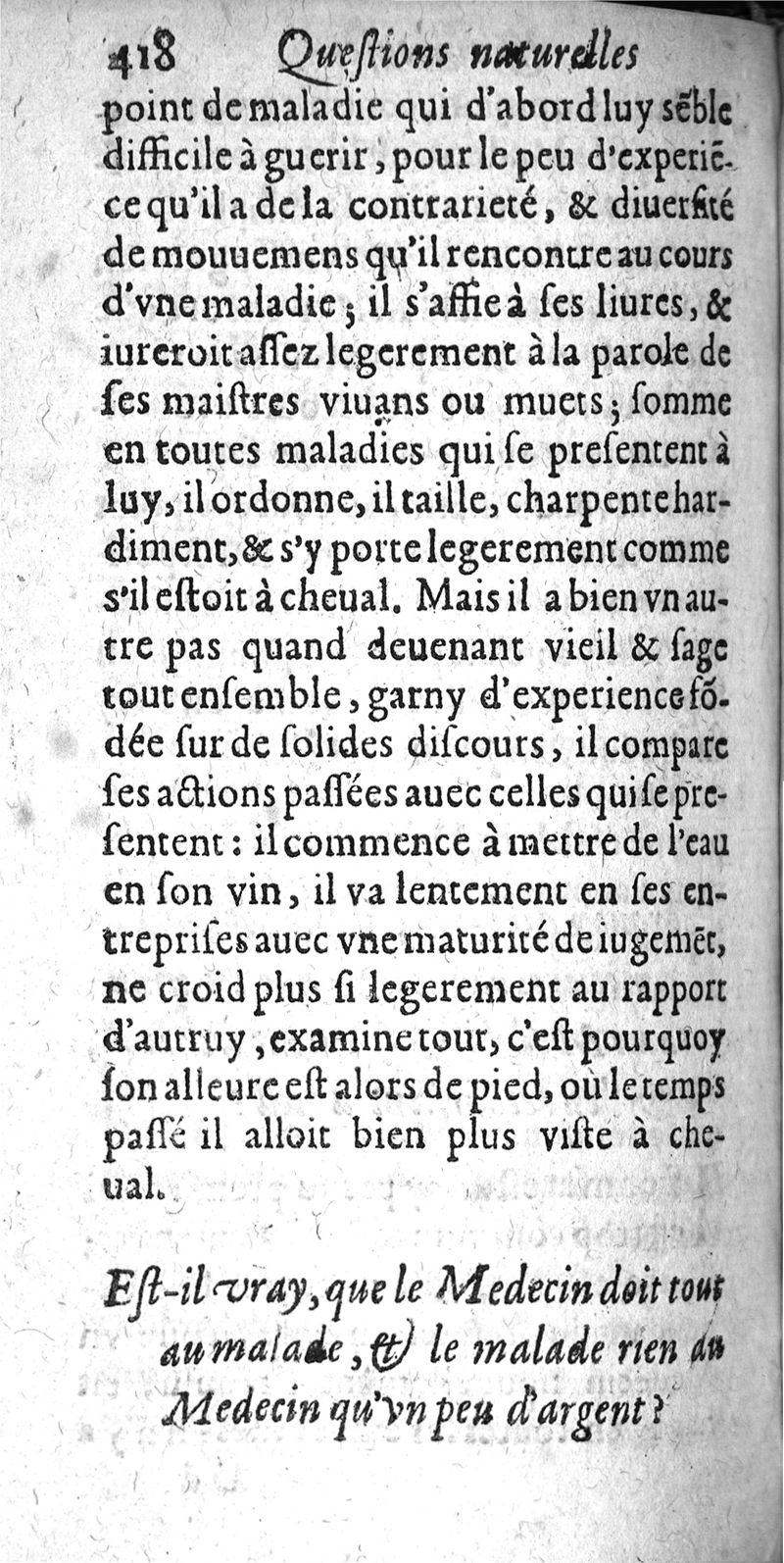 Questions naturelles et curieuses et curieuses : contenans diverses opinions problematiques, recueillies de la Medecine, touchant le regime de santé. ou se voient plusieurs proverbes populaires...curieusement recherchee & resoluës par P. Bailly...