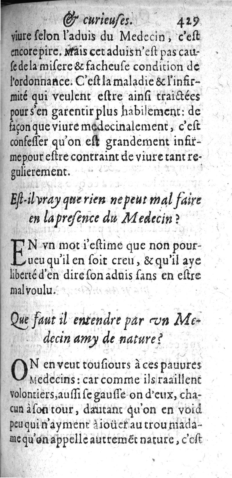 Questions naturelles et curieuses et curieuses : contenans diverses opinions problematiques, recueillies de la Medecine, touchant le regime de santé. ou se voient plusieurs proverbes populaires...curieusement recherchee & resoluës par P. Bailly...
