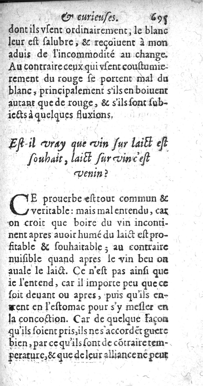 Questions naturelles et curieuses et curieuses : contenans diverses opinions problematiques, recueillies de la Medecine, touchant le regime de santé. ou se voient plusieurs proverbes populaires...curieusement recherchee & resoluës par P. Bailly...