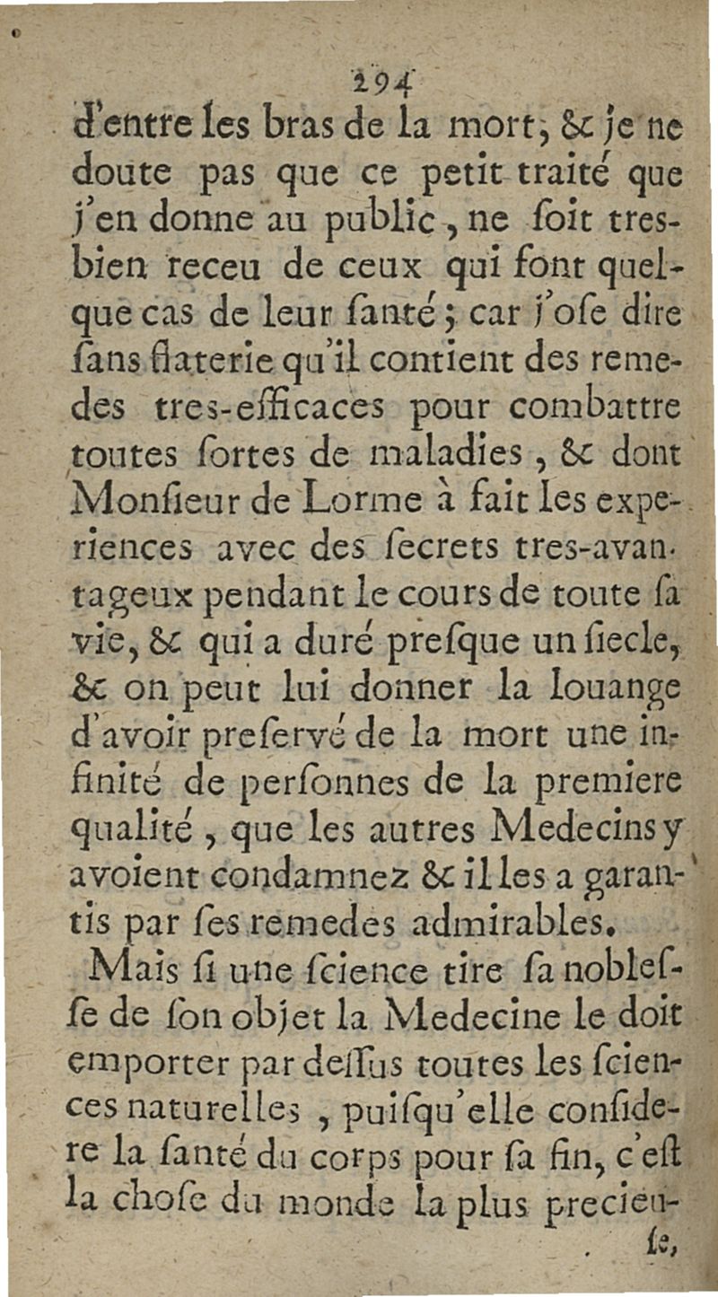Moiens faciles et eprouvez dont Monsieur de Lorme premier Médecin & ordinaire de trois de nos Rois, & Ambassadeur à Cleves pour le Duc de Nevers, s'est servi pour vivre près de cent ans