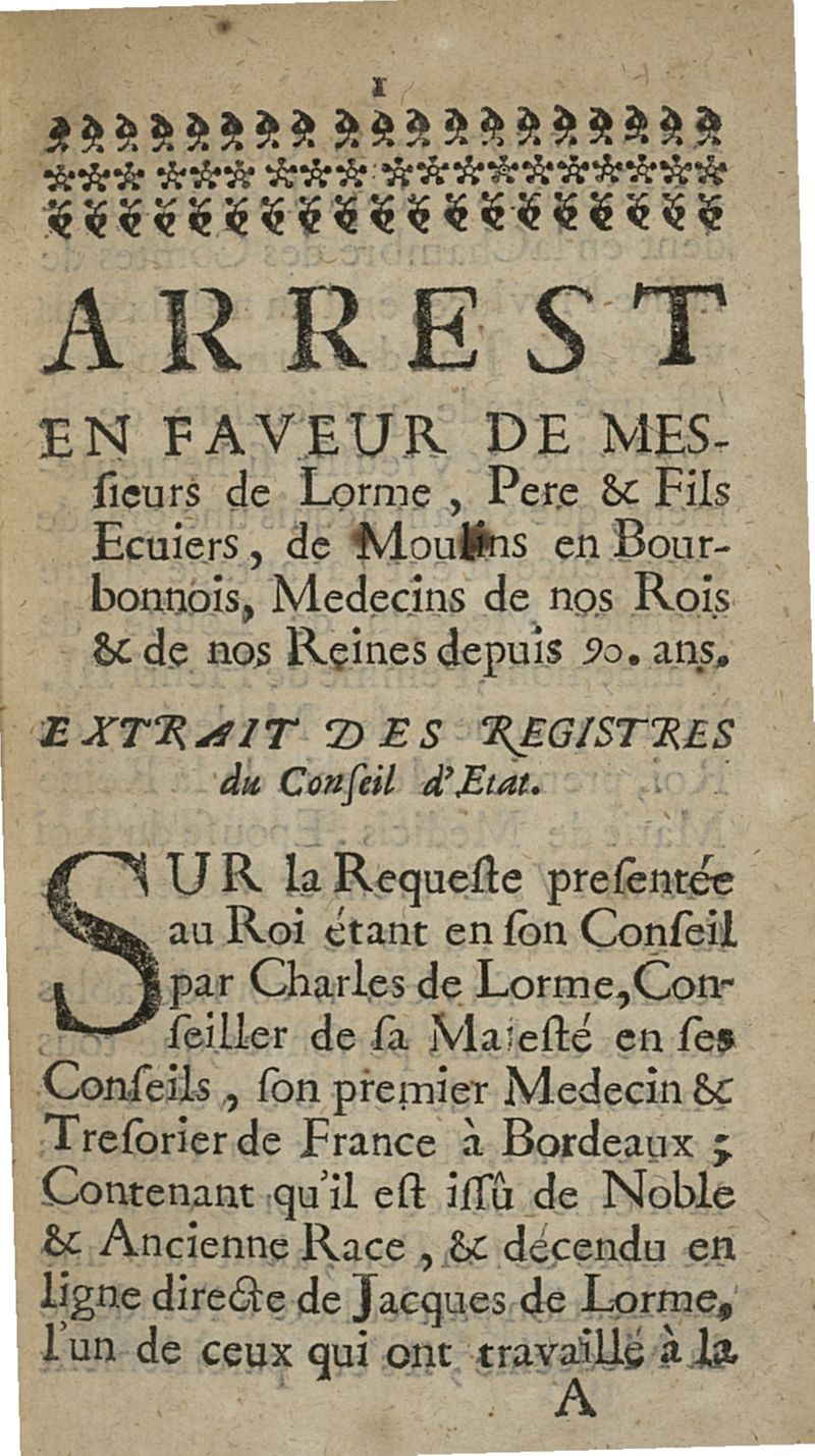 Moiens faciles et eprouvez dont Monsieur de Lorme premier Médecin & ordinaire de trois de nos Rois, & Ambassadeur à Cleves pour le Duc de Nevers, s'est servi pour vivre près de cent ans