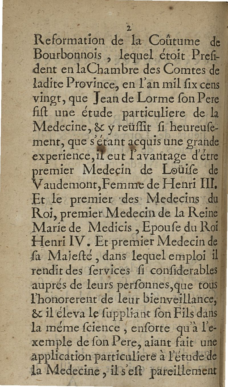 Moiens faciles et eprouvez dont Monsieur de Lorme premier Médecin & ordinaire de trois de nos Rois, & Ambassadeur à Cleves pour le Duc de Nevers, s'est servi pour vivre près de cent ans