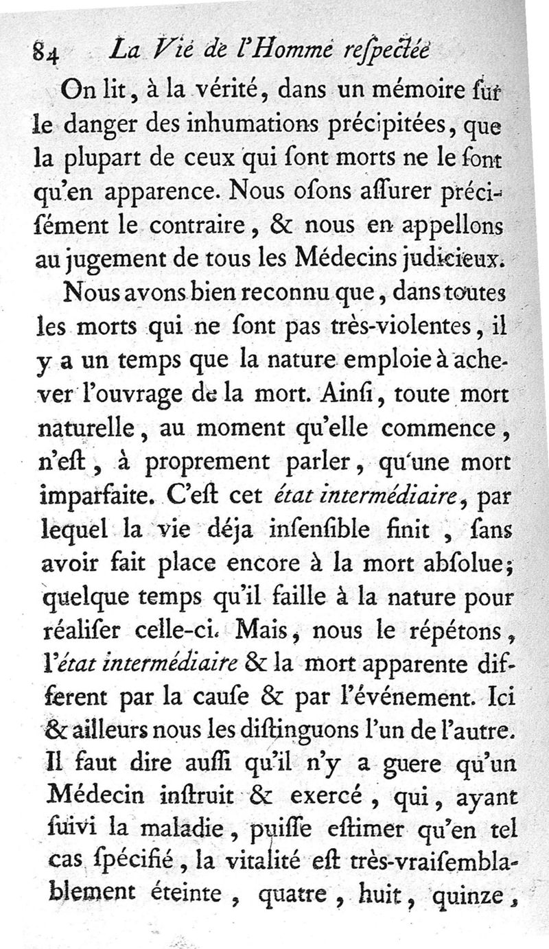 La Vie de l'homme respectée et défendue dans ses derniers momens, ou Instruction sur les soins qu'on doit aux morts et à ceux qui paraissent l'être, sur les funérailles et les sépultures