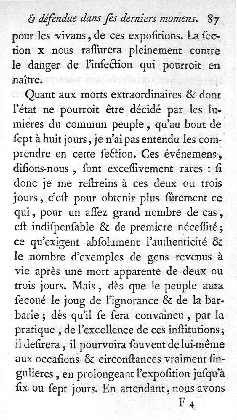 La Vie de l'homme respectée et défendue dans ses derniers momens, ou Instruction sur les soins qu'on doit aux morts et à ceux qui paraissent l'être, sur les funérailles et les sépultures