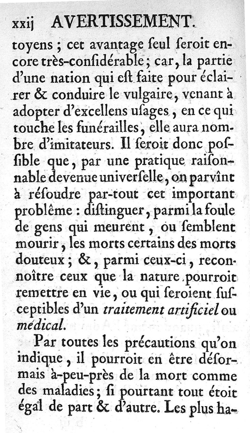 La Vie de l'homme respectée et défendue dans ses derniers momens, ou Instruction sur les soins qu'on doit aux morts et à ceux qui paraissent l'être, sur les funérailles et les sépultures