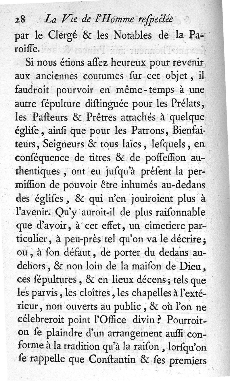 La Vie de l'homme respectée et défendue dans ses derniers momens, ou Instruction sur les soins qu'on doit aux morts et à ceux qui paraissent l'être, sur les funérailles et les sépultures