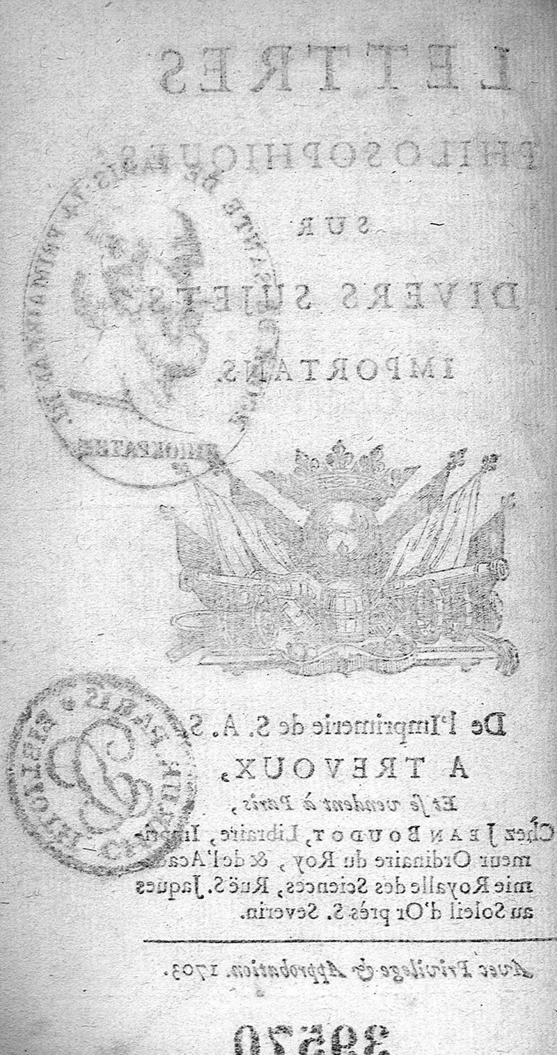 Lettres philosophiques sur divers sujets importans