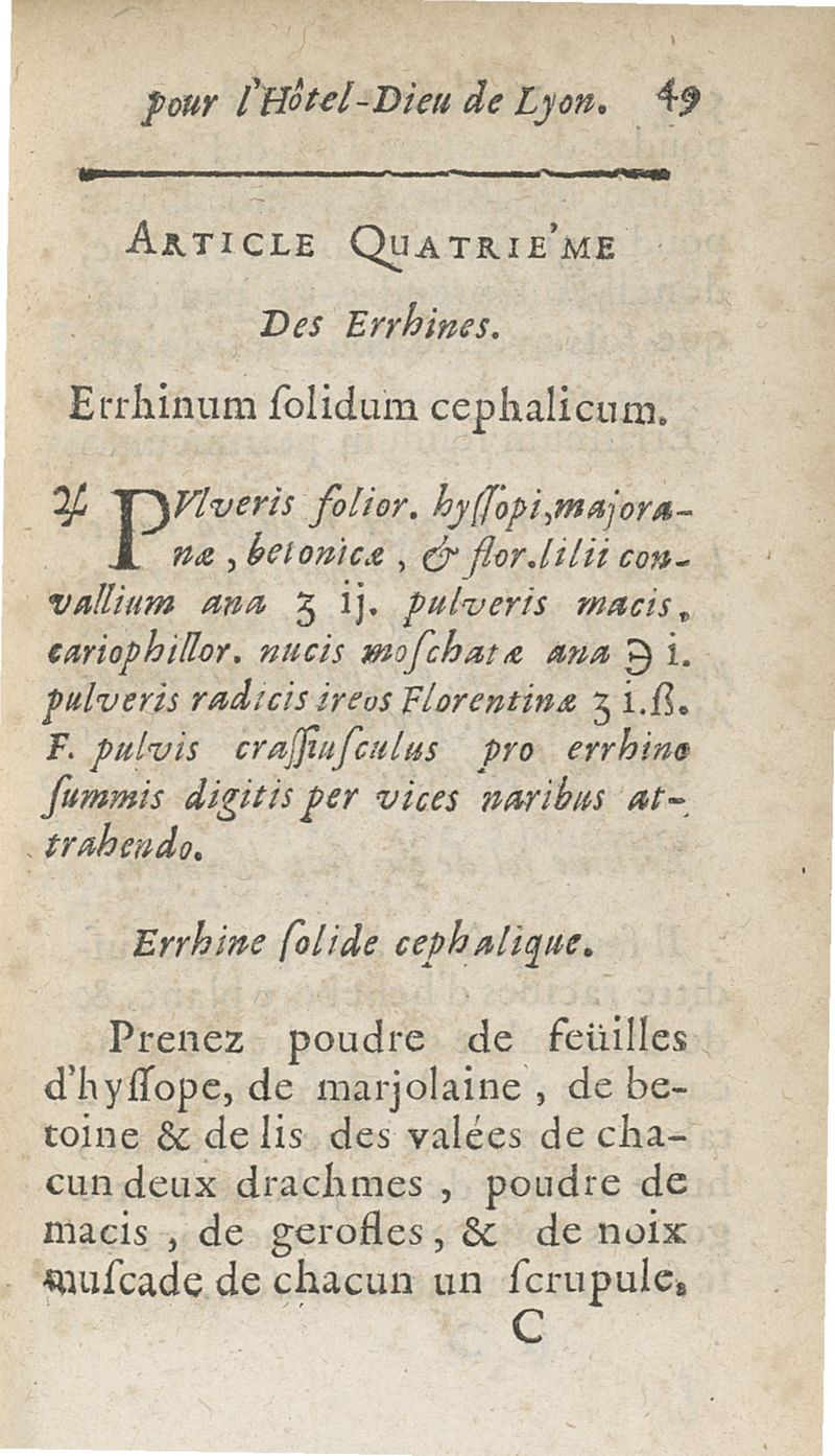 Nouvelles formules de medecine latines et francoises, pour le Grand-Hôtel-Dieu de Lyon utiles aux autres hôpitaux, tant des villes que des armées, & aux jeunes medecins, chirurgiens & apothicaires composées...augmentées d'un traité de la verole ; seconde edition