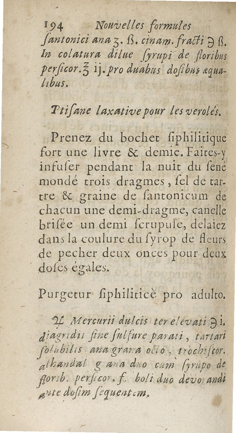 Nouvelles formules de medecine latines et francoises, pour le Grand-Hôtel-Dieu de Lyon utiles aux autres hôpitaux, tant des villes que des armées, & aux jeunes medecins, chirurgiens & apothicaires composées...augmentées d'un traité de la verole ; seconde edition